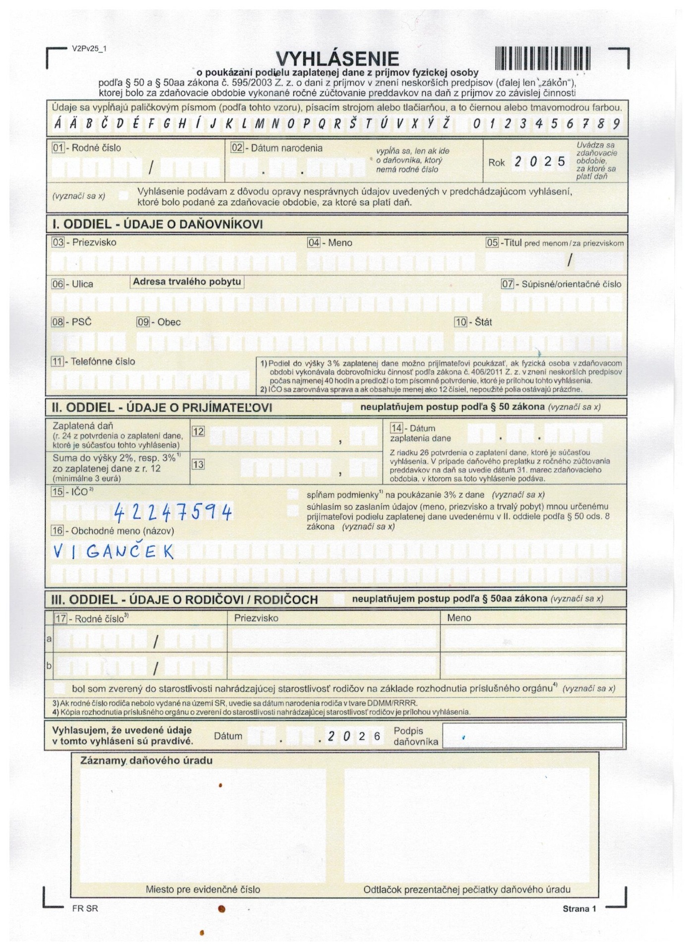 Darujte Vigančeku 2% z ročnej dane.